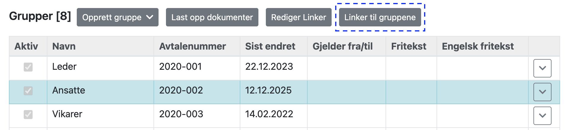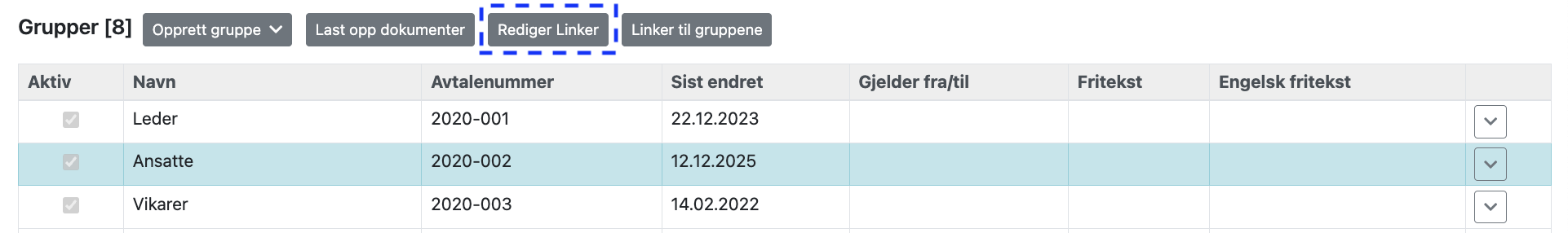 1. Merk grupper som skal redigeres.