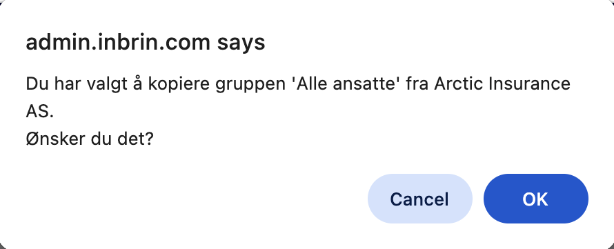 Du kan også kopiere en gruppe til en ny gruppe med identiske vilkår og beregninger innenfor en og samme kunde. Typisk brukt der man innenfor et og samme konsern med identiske vilkår og forsikringsgiver for flere datterselskap, og hvor gruppene under kunden representerer datterselskapene. Denne måten å løse konsern med datterselskap som har like vilkår / beregninger kan være fordelaktig med tanke på administrasjon av dokumenter, forsikringsbevis etc. i PersonPortalen.
