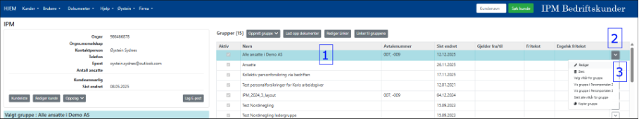 2) Oversikt som viser hvilke grupper som er tilknyttet kunden.